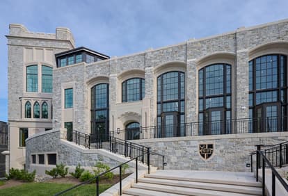 Stone veneers, such as granite, limestone, and marble, typically 1.5 to 2 inches thick, can be drilled, fitted with stainless steel pins, and then cast into rigid precast backers, or they are hand-set at the plant by masons before precast delivery on-site. This allows for the creation of large precast wall panels that are either fully or partially veneered.