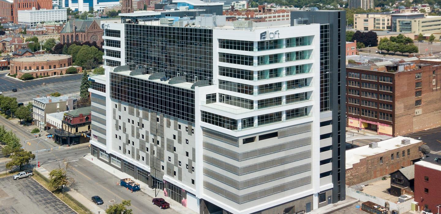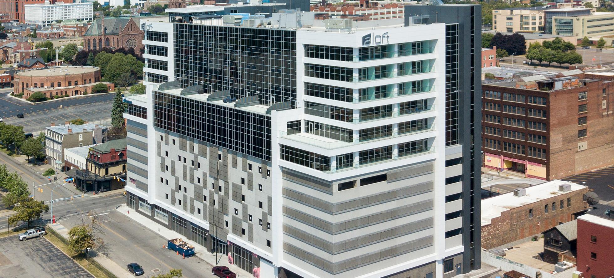 Being one of a kind structure in the Buffalo, NY area, this garage faced unfamiliar design aspects to meet the functional needs. The precast design allowed for the parking to be effectively concealed without the appearance of a parking structure. This mixed-use structure is a, “great way to combine functional parking architecture with other uses.”