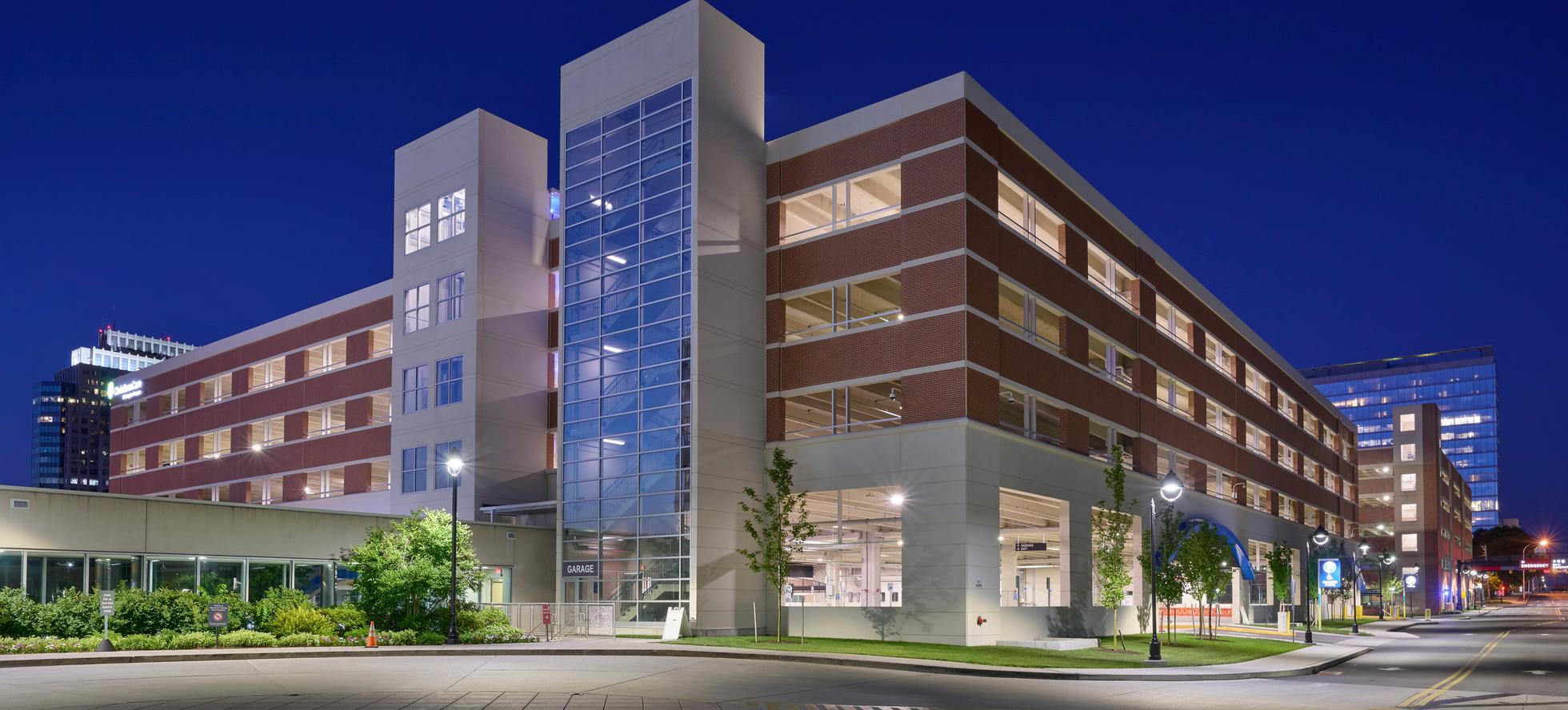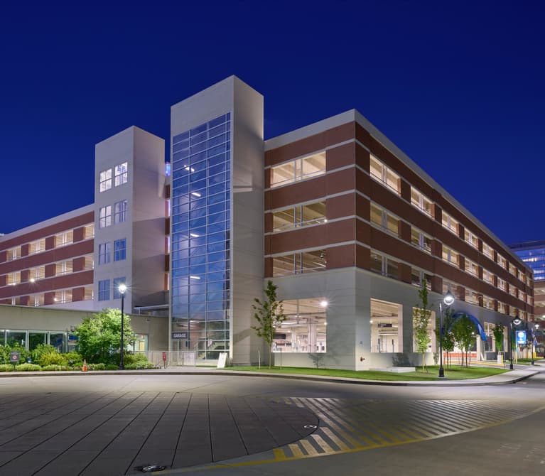 One of the hospital’s long-term goals is to ensure that the community have convenient access to high-quality care. The new 860-space parking structure was built adjacent to the hospital, which remained open and fully functioning during construction. Contracts for the demolition of the existing parking garage and site preparation were awarded early to avoid any delays. The hospital wanted to minimize disruption and open the garage as quickly as possible. With the elimination of the old garage, parking was at a premium.