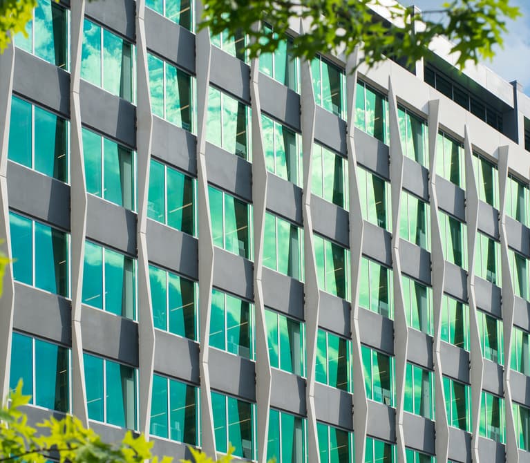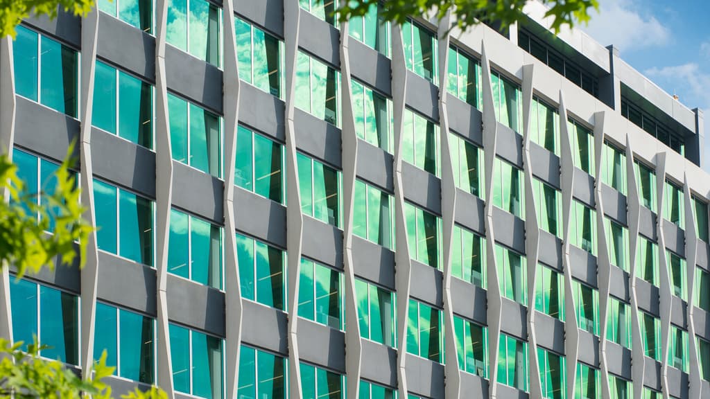 Due to the expectation of growth in the future, it was important that this structure could accommodate an additional 10-story addition. This building, built with LEED silver certification contingency, was designed to withstand a future 10-floor addition. A mirrored image of the building standing would be able to be placed above the existing structure.