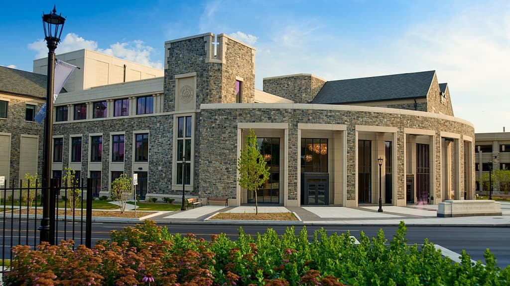 The John and Joan Mullen Center for the Performing Arts is the last in a series of planned projects along Lancaster Avenue. The goal was to create a venue that would give the local community an opportunity to experience new forms of art and culture, as well as a facility where theater students could experience hands-on learning. The Villanova campus is known for its Gothic-style architecture, and the performing arts center’s design complements the traditional style of surrounding structures. Precast concrete panels with plant-installed stone met the aesthetic and functional needs of the university at a lower cost and faster construction time than could have been achieved with a design featuring a traditional stone facade.